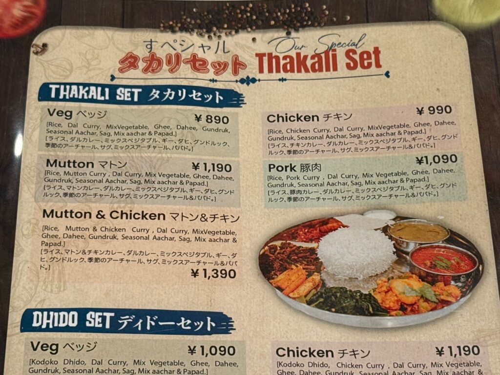 メニューに「Thakali Khana Set タカリカナセット」を用意されており、
