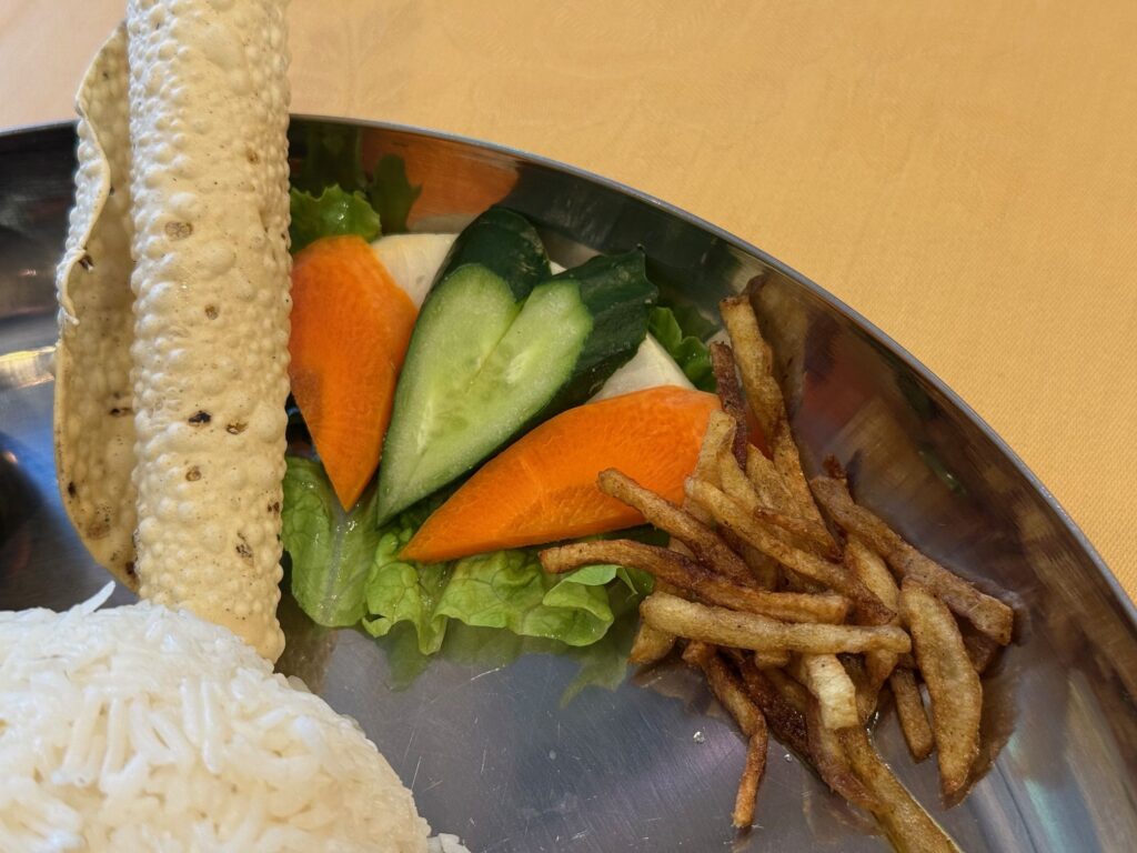 スライス野菜、じゃが芋、人参、胡瓜のミックスアチャール、パパドゥが並びました。