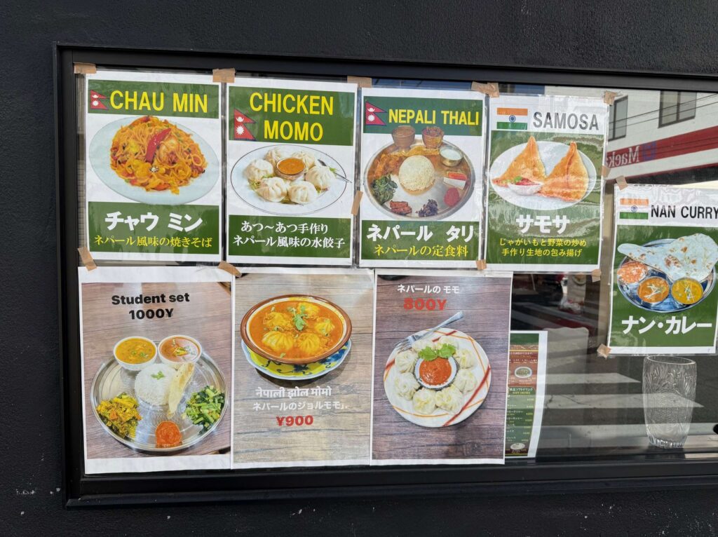 壁には Nepali Nenu として、MOMO と DAL BHAT が掲げられており、