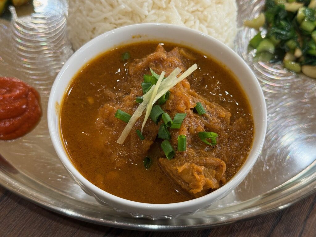 骨付き皮付き肉が使われたマトンカリー、