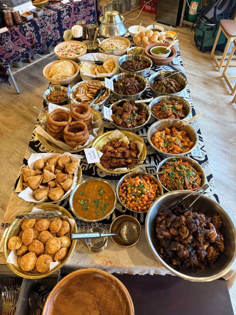 トマトのアチャール、のらぼう菜とじゃが芋入りのサモサ、