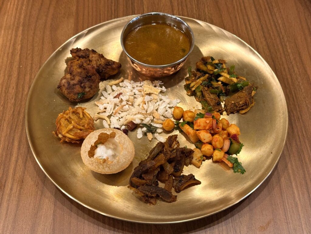 ポテトブジャ、スライス野菜、パパドゥが並びました。