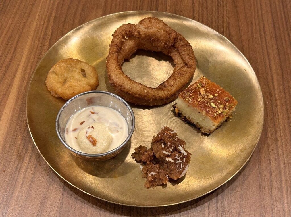 ハーブティー、パパドゥも添えられ、マルプワハルワ、マサラチヤも頂きました。