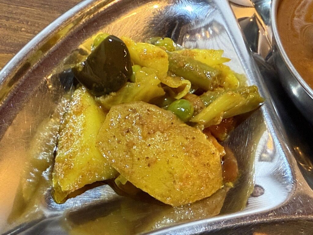 タルカリは、じゃが芋、人参、キャベツ、茄子、インゲン、ケラウです。