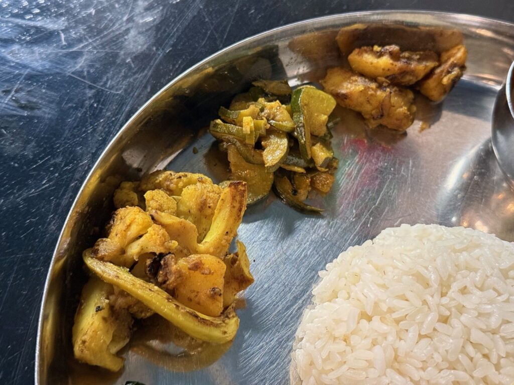 じゃが芋とカリフラワー、ズッキーニ、じゃが芋のアチャールが並びます。