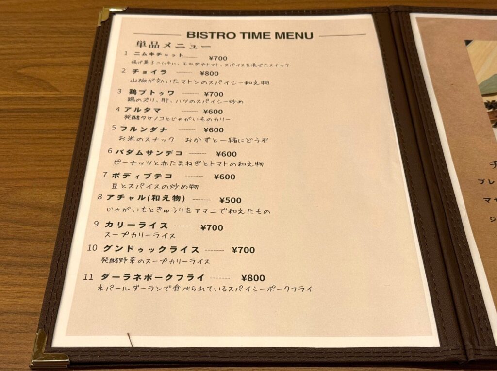 大阪市北区の「Nepal Tea House Kathmandu」さんの BISTRO TIME MENU の中から、
