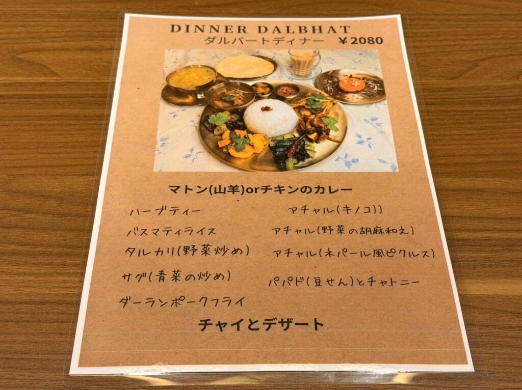 ディナータイムのダルバートもメニュー入りです。