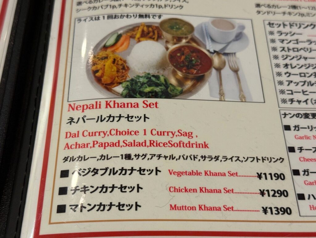メニューに 3種類のネパールカナセット Nepali Khana Set を用意されており、