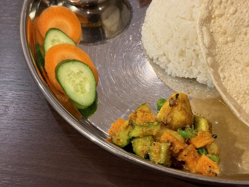 スライス野菜、じゃが芋、人参、胡瓜のミックスアチャール、パパドゥが並びました。