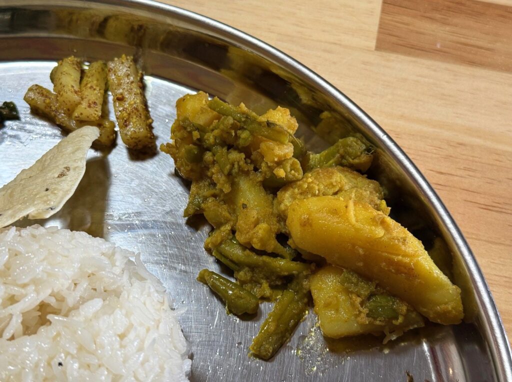 大根のアチャール、じゃが芋、カリフラワー、いんげんのタルカリ、