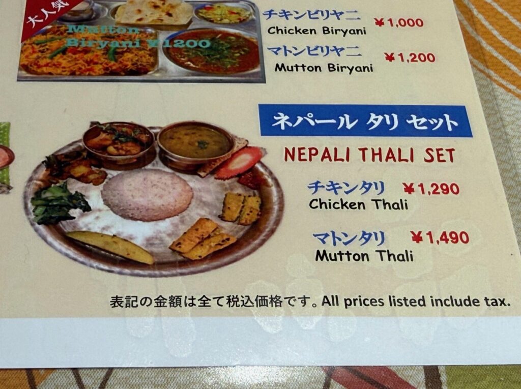 メニューにチキンとマトンの Nepali Thali Set を用意されています。