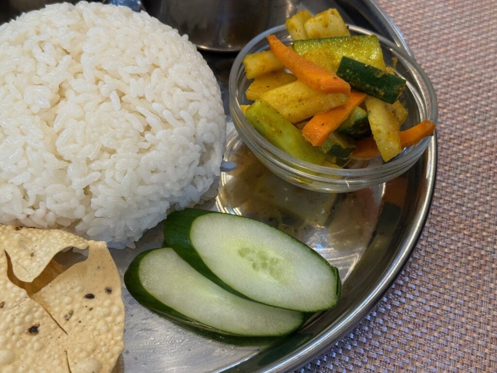 大根、人参、胡瓜のミックスアチャール、胡瓜スライス、パパドゥが並びました。