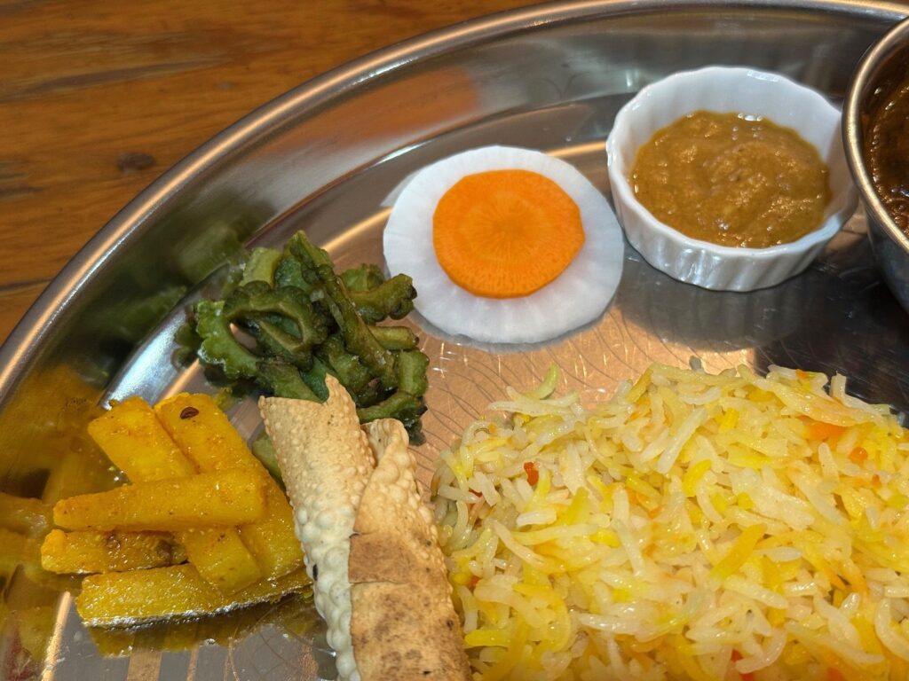 大根のアチャール、ゴーヤ、スライス野菜、トマトのアチャールが並びました。