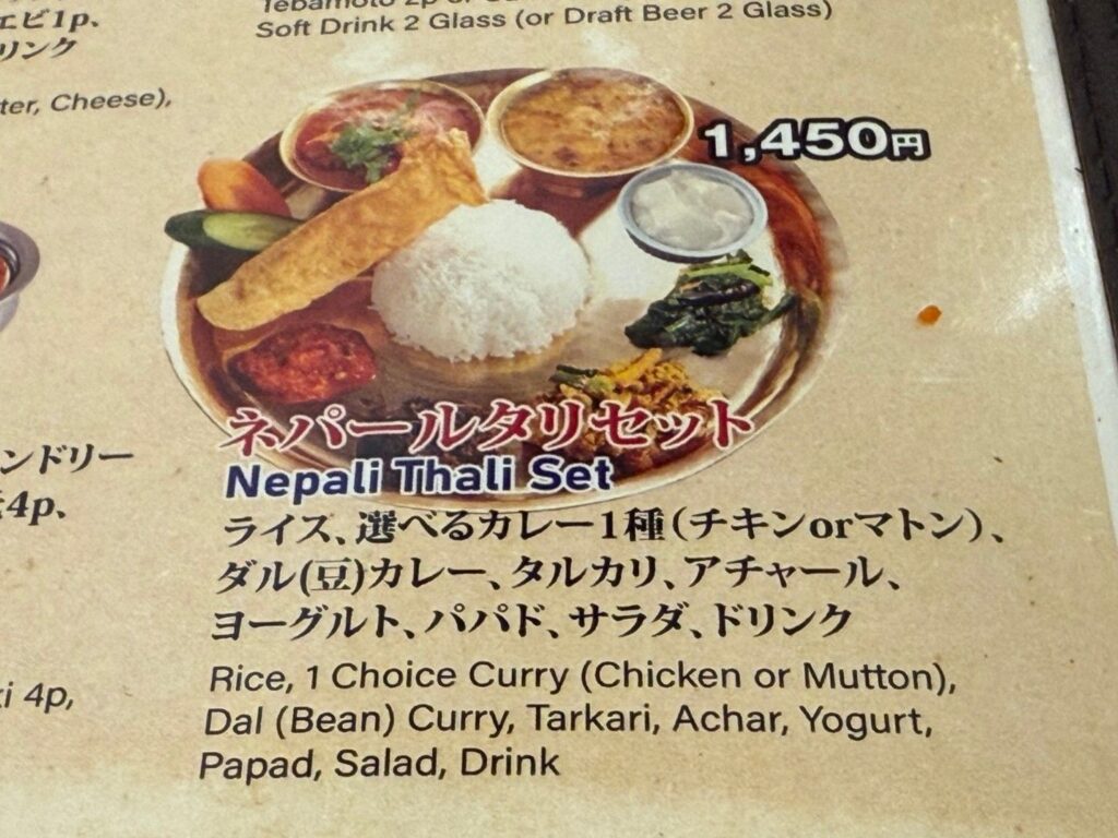 メニューに『ネパールタリセット Nepali Thali Set』を用意されており、