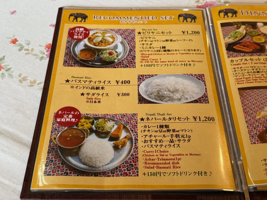 メニューに『ネパールタリセット Nepali Thali Set』を用意されており