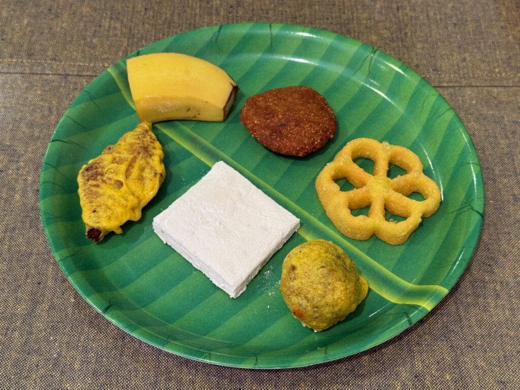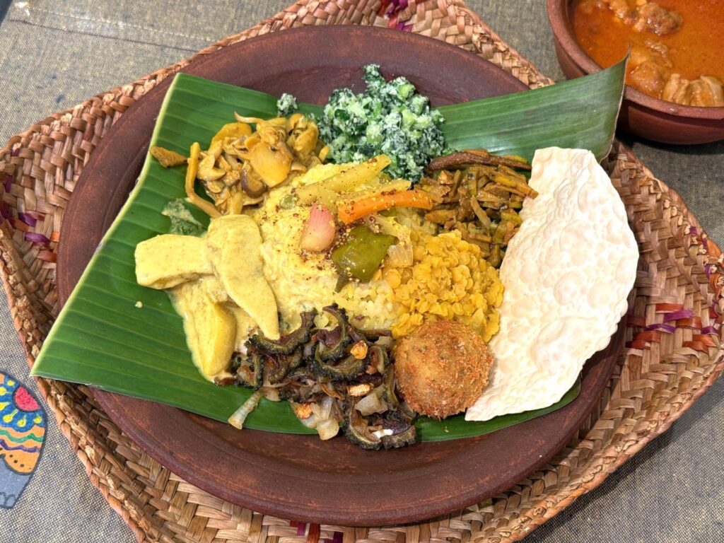 今年もシンハラ・タミルニューイヤーのスペシャルメニューを用意されました。その日に伺うことが出来ませんでしたが、この日もお祝いのラサケビリ Rasa Kevili を皆様に振舞われました。奥のバナナから時計回りに、アティラサ Athirasa、コキス、ムングリ、アルワ、ムンキャウンが並び、