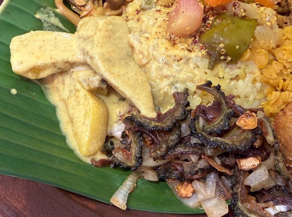副菜には、青バナナのカリー、ゴーヤのサラーダ、