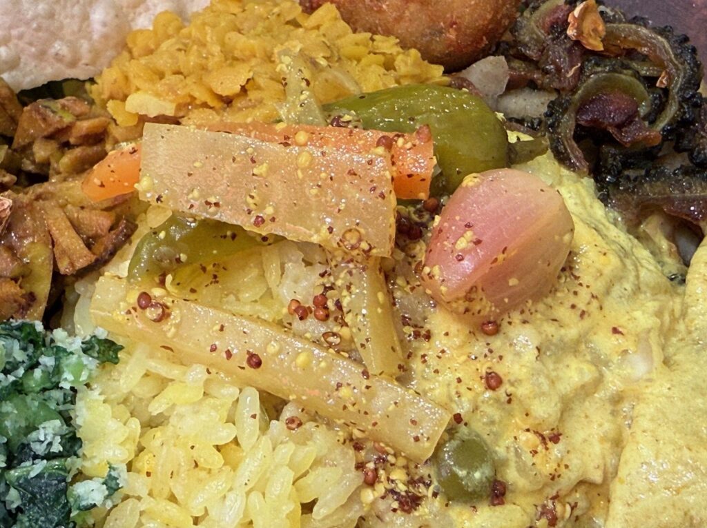 ごはんは炊き込みご飯でシンハラアッチャールも添えられています。