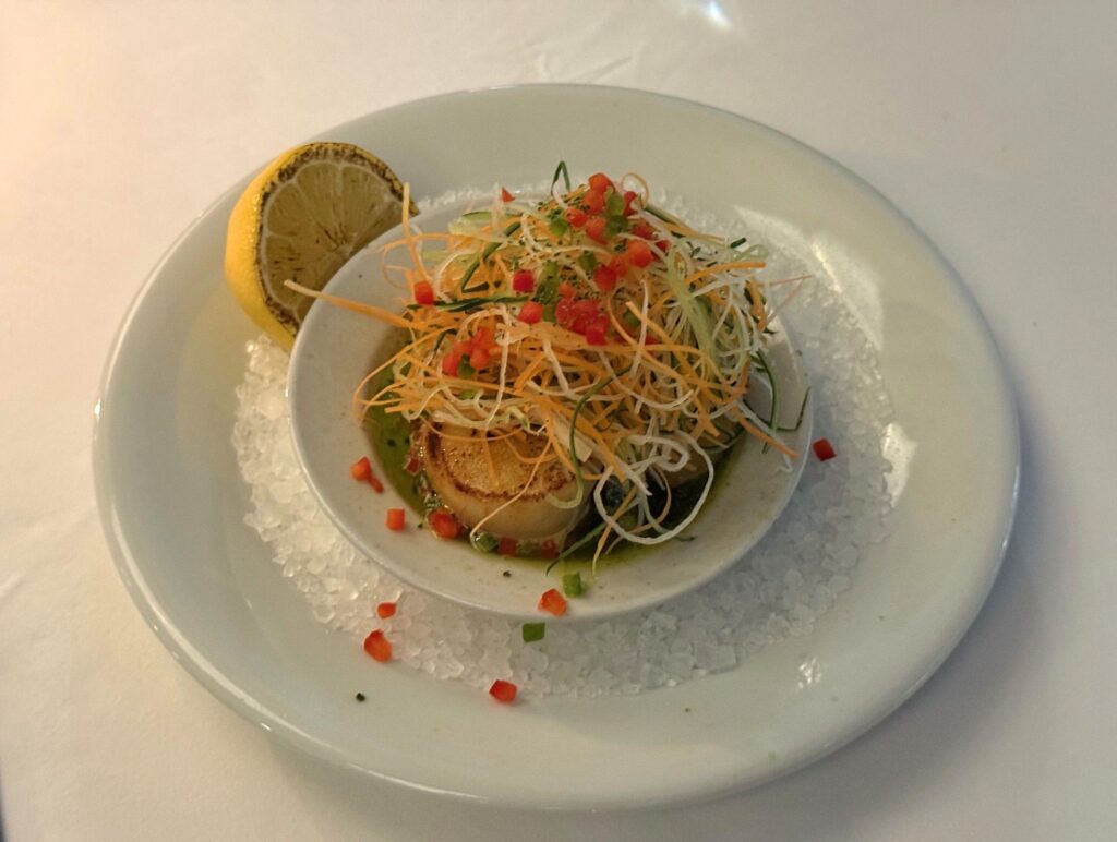 グラングリーン大阪南館にある「ルースクリス RUTH’S CHRIS STEAK HOUSE」さんへ伺いました。ジャンボホタテの炙り、ルースのチョップサラダ 、ポーターハウス(2人前)とリブアイに、ベイクドポテトとアスパラガスのグリルも添えました。飲み物はグラスでお願いした Organic Sauvignon Blanc, SHANNON RIDGE, CA、バーボンベースのショートカクテル BOURBON STREET MANHATTAN を挟んで、Cabernet Sauvignon, Twenty Rows, Napa Valley, CA も頂きました。デザートはアップルクランブルタルト グラニースミスとシュトロイゼル、バニラアイス添えとカプチーノです。