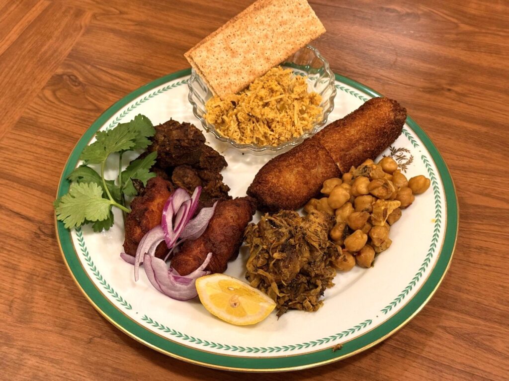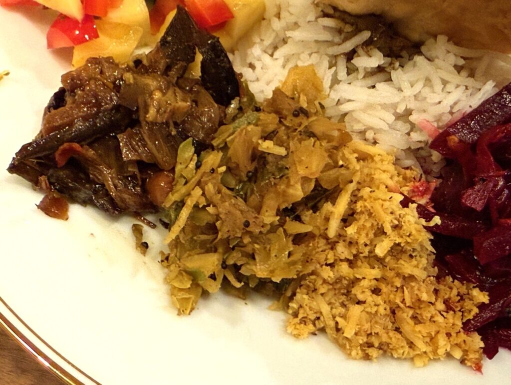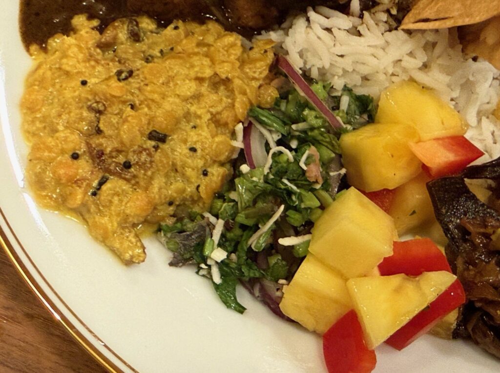 パリップ、パクチーサンボーラ、パイナップルとパプリカ、
