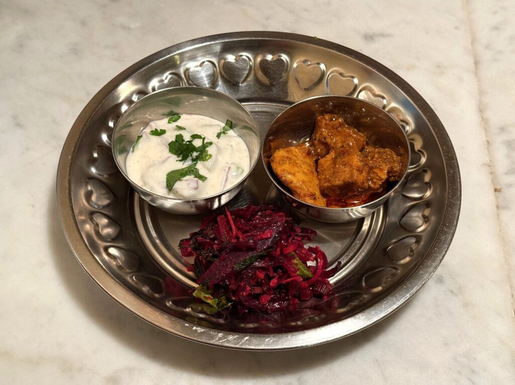 「亜州食堂 チョウク CHOWK」さん『ニューイヤー駅弁 台湾便當おまかせコース』を用意されました。前菜はビーツのポリヤル、じゃが芋のパチャディ、チキンのピックル【南インド】、