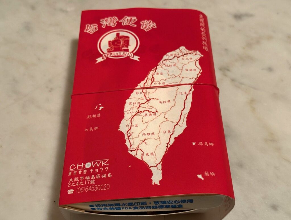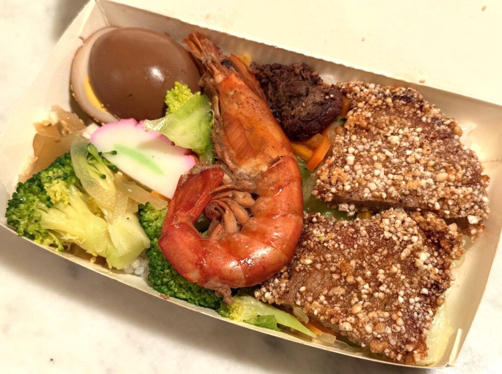 台灣便當には、排骨、馬告を使った熊肉、海老、滷蛋、ブロッコリー、搾菜が並びました。