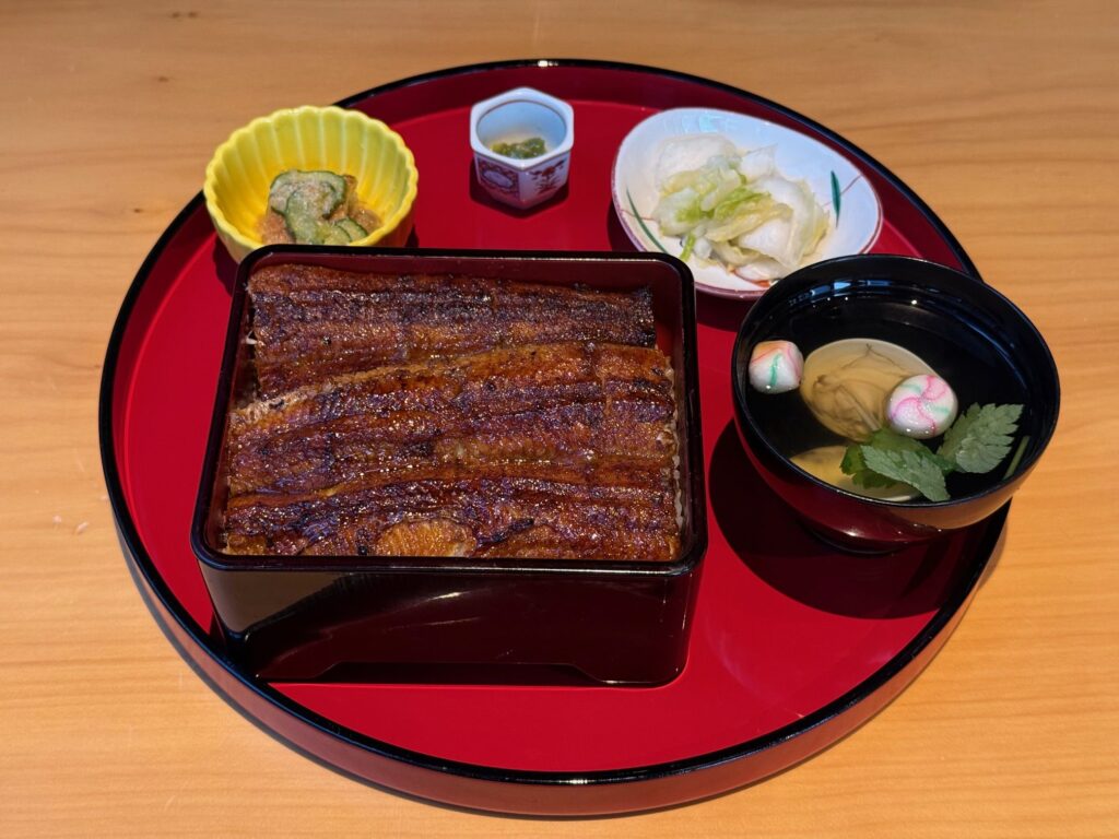 うな重には、うざく、お吸い物、漬物が添えられます。