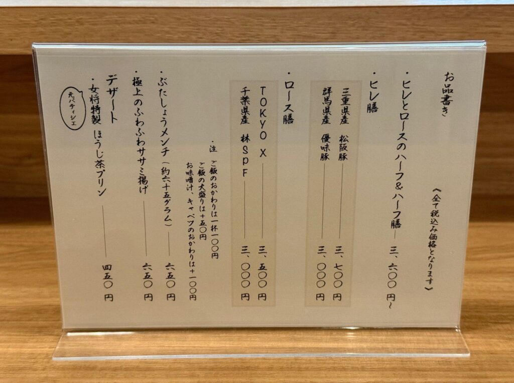 予約なしで伺いましたので、この日は『ヒレとロースのハーフ&ハーフ膳』しか用意が無いとのことでした。