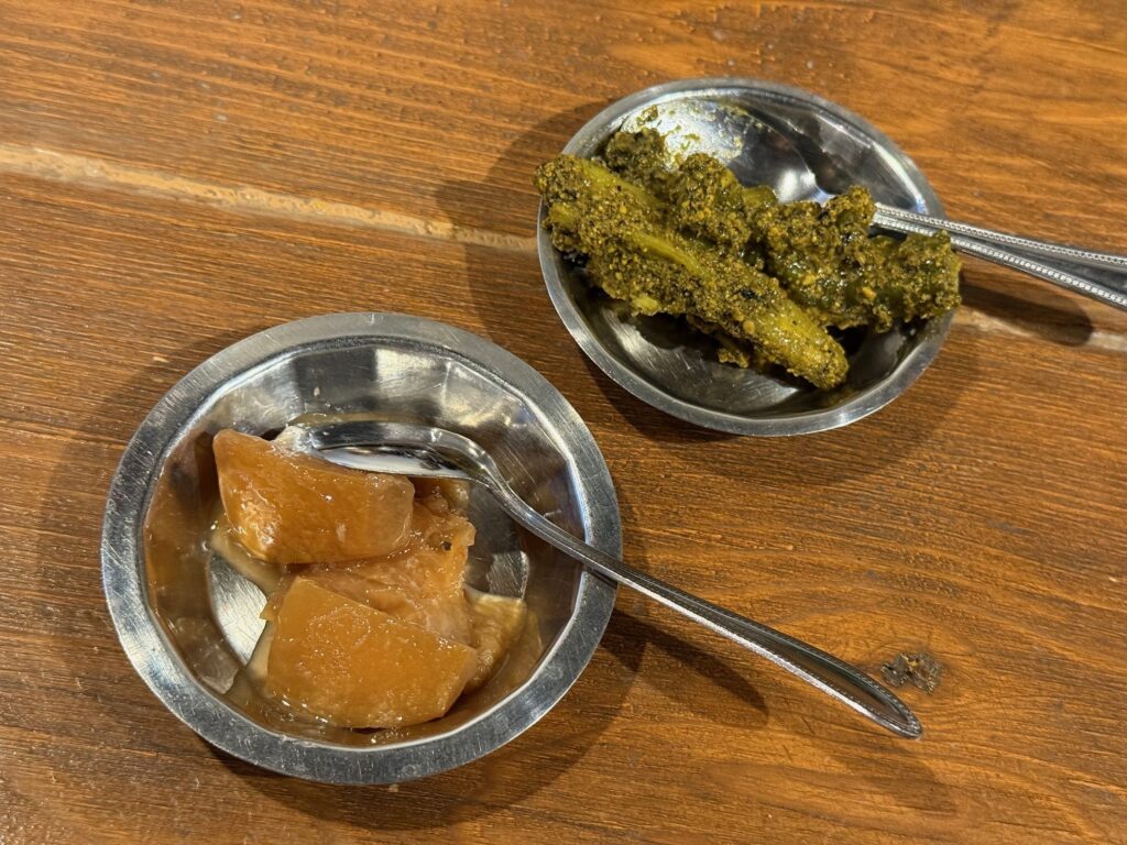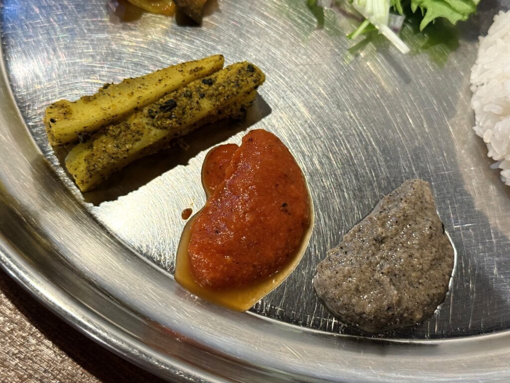 胡麻のアチャール、トマトのアチャール、大根のアチャール、